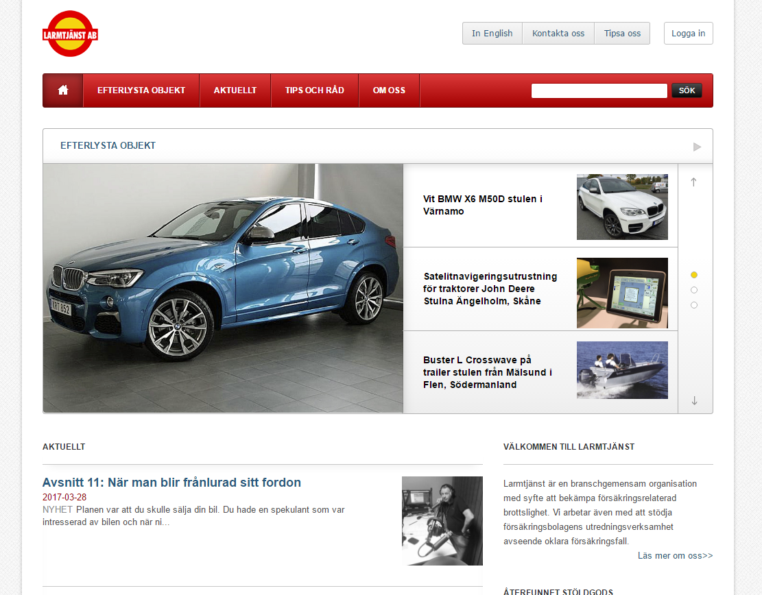 Larmtjänst är en gemensam organisation för de svenska sakförsäkringsbolagen. Vårt syfte är att bekämpa försäkringsrelaterad brottslighet och stödja bolagens utredningsverksamhet i oklara fall.